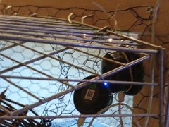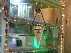 Und eine Reihe Lichterketten am Käfiggestell.